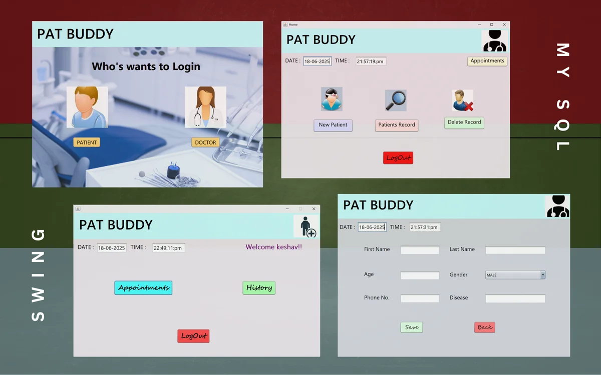 Java Swing desktop application for managing patient records and appointments using MySQL and JDBC.